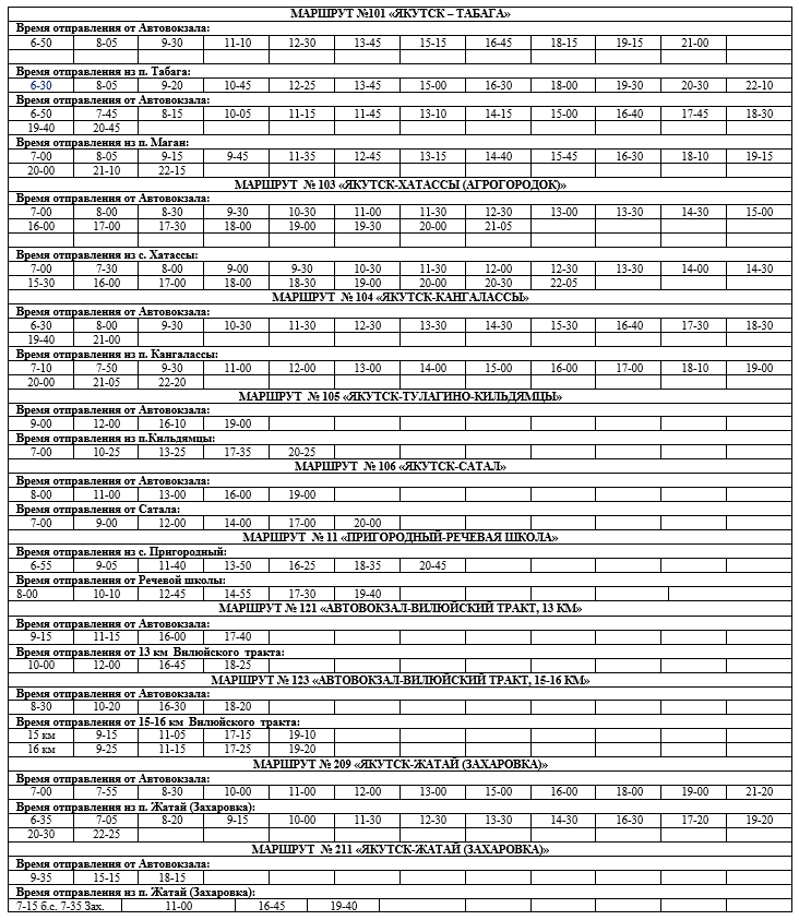 № 123 «Автовокзал-Вилюйский тракт» с заездом на все км