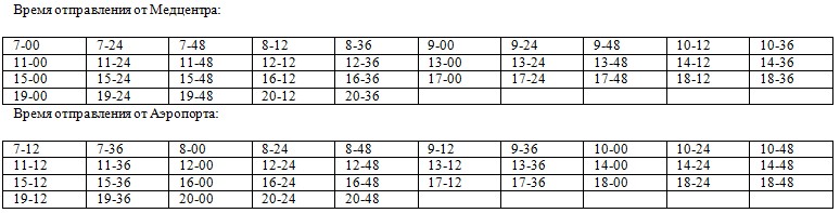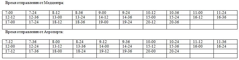 Расписание  маршрута № 100 «Медцентр-Аэропорт»