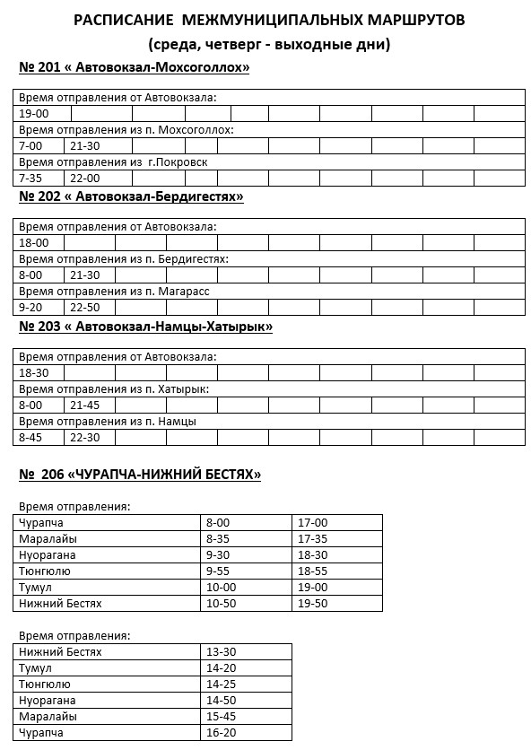 РАСПИСАНИЕ МЕЖМУНИЦИПАЛЬНЫХ МАРШРУТОВ 201,202,203,206
